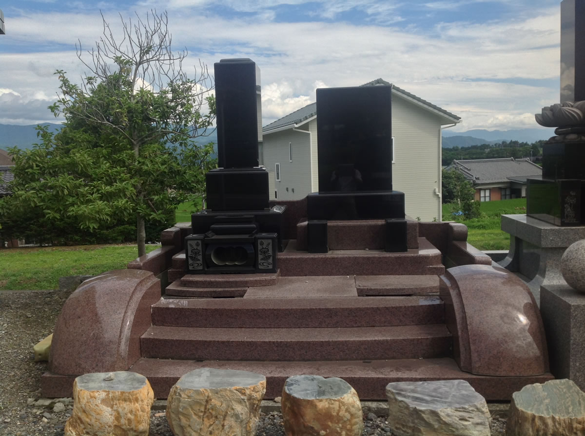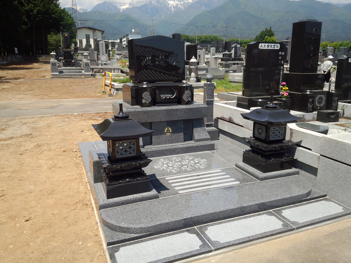 墓石に刻む文字に特に決まりは無いようですが、最近では国内の墓地事情もあり一家にひとつの「家墓タイプ」が増えたため、家名を刻んだものも多く見らるようになりました。